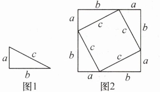 1. 用 4 个如图 1 所示的形状、大小完全一样的直角三角形拼一拼、摆一摆,可以摆成如图 2 所示的正方形,下面我们利用这个图形验证勾股定理。