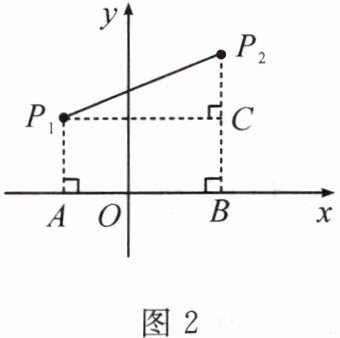 。(2) 如图 2,$ P_{1}C = x_{2} - x_{1} $,$ P_{2}C = y_{2} - y_{1} $,由勾股定理,得 $ P_{1}P_{2}= $