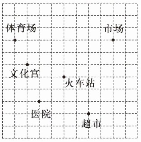 (2)体育场$(-2,4)$,市场$(6,4)$,超市$(4,-2)$.