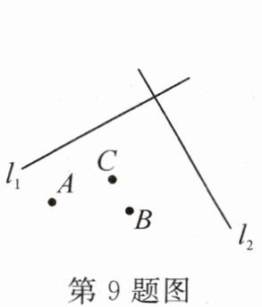 9. 如图,直线l₁⊥l₂,在平面直角坐标系中,l₁//x轴,l₂//y轴,点A,B的坐标分别为(-1,1),(2,-1),则点C在第