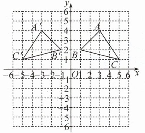 (1)△ABC与△A'B'C'关于y轴对称.A(3,4),A'(-3,4),B(1,2),B'(-1,2),C(5,1),C'(-5,1),对应顶点的纵坐标相同,横坐标互为相反数.