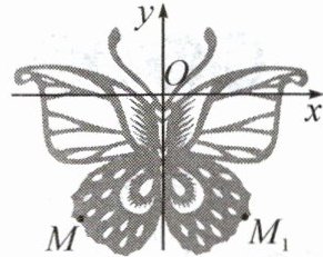 2. (2024·绵阳)蝴蝶颜色绚丽,翩翩起舞时非常美丽,深受人们喜爱,它的图案具有对称美.如图,蝴蝶图案关于$y$轴对称.点$M$的对应点为$M_1$,若点$M$的坐标为$(-2,-3)$,则点$M_1$的坐标为(