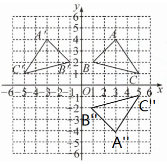 (2)作出$\triangle ABC$关于$y$轴对称的$\triangle A''B''C''$.