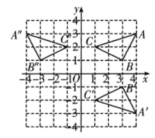 (2)若$\triangle ABC$各顶点的横坐标不变,纵坐标都乘$-1$,请在同一平面直角坐标系中描出对应的点$A''$,$B''$,$C''$,并依次连接这三个点,则所得的$\triangle A''B''C''$与$\triangle ABC$有怎样的位置关系?