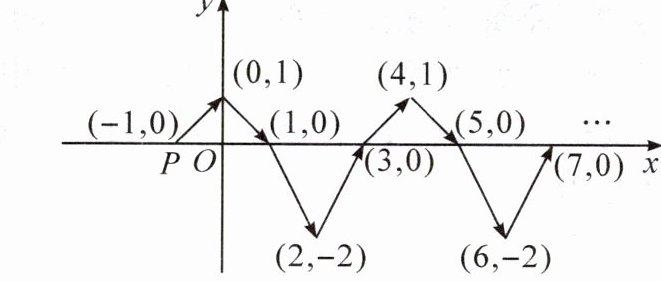 4. 如图, 在平面直角坐标系中, 动点 $ P $ 按照图中箭头所示方向依次运动, 第 $ 1 $ 次从点 $ ( - 1, 0 ) $ 运动到点 $ ( 0, 1 ) $, 第 $ 2 $ 次运动到点 $ ( 1, 0 ) $, 第 $ 3 $ 次运动到点 $ ( 2, - 2 ) \cdots \cdots $ 按这样的运动规律, 动点 $ P $ 第 $ 2024 $ 次运动到达的点的坐标为 (