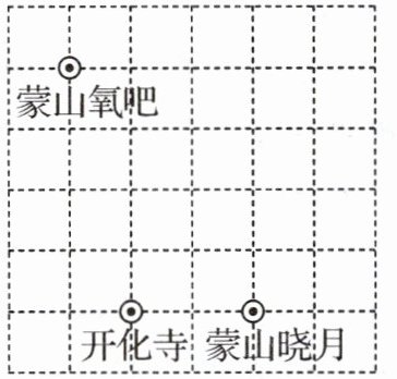 7. “计里画方”是中国古代一种按比例尺绘制地图的传统方法,绘图时先在图上布满方格,然后按方格绘制地图内容. 小华按照“计里画方”的方法,绘制了蒙山大佛旅游区的局部示意图(如图). 若该图中“开化寺”与“蒙山晓月”两处景点的坐标分别为 $ (-1,-2) $,$ (1,-2) $,则景点“蒙山氧吧”的坐标为