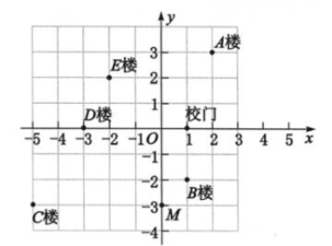 (2) 写出图中校门、B 楼、C 楼、D 楼的坐标.