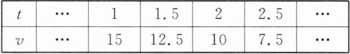 (1)20 由题意可知,刹车时的平均变化速度为$\frac {10-15}{2-1}=-5(m/s).(2)v=20-5t.$