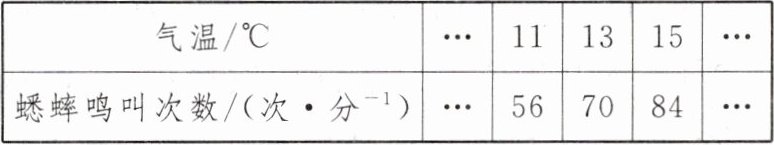 6. 大自然中的音乐与数学有着奇妙的联系,蟋蟀鸣叫就是其中的一种.据悉在一定温度范围内,蟋蟀鸣叫的次数与气温关系密切,项目化学习小组统计了本地不同气温下某种蟋蟀每分钟鸣叫的次数,汇总如下表: