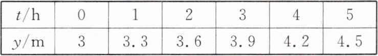 (3)水位高度y与时间t之间的关系式为y=0.3t+3.