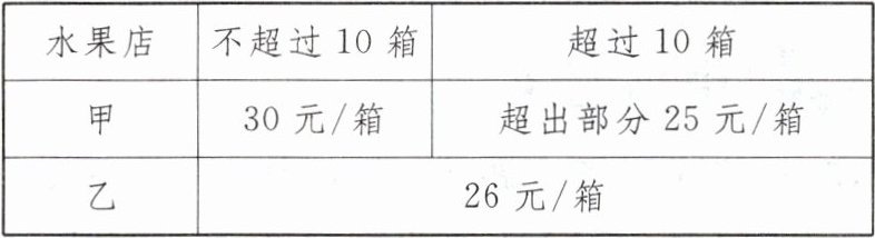 (1)甲水果店:不超过10箱,即当0≤x≤10时,y=30x;超过10箱,即当x>10时,y=30×10+25(x-10)=25x+50,