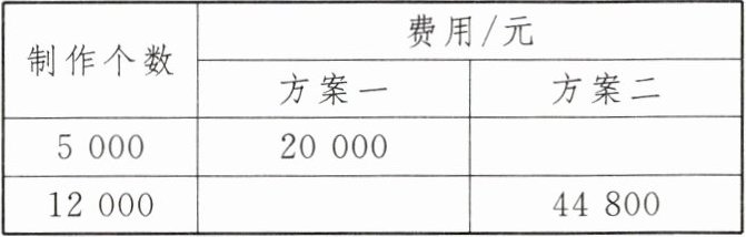 (3)由题意,得2.4x+16 000=4x,解得x=10 000。答:需要制作10 000个纸箱时,选择方案一和方案二的费用相同。