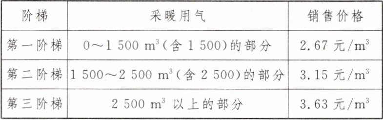 4. 北方某市对城市居民该冬季的采暖收费标准如下表:(以户为单位)