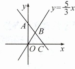 【例3】如图,在平面直角坐标系中,一次函数$y = kx + 9$的图象与$y$轴相交于点$A$,与$x$轴相交于点$C$,并与直线$y=\frac{5}{3}x$相交于点$B$,其中点$B$的横坐标为$3$。