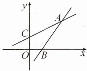 2. 如图,直线$y = 2x - 2$与$x$轴交于点$B$,直线$y=\frac{1}{2}x + 1$与$y$轴交于点$C$,这两条直线相交于点$A(2,a)$。求: