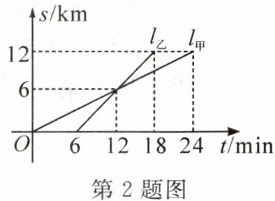 2. 如图,甲、乙两人以相同路线前往离学校$12km$的地方参加植树活动,图中$l_{甲}$,$l_{乙}$分别表示甲、乙两人前往目的地所行驶的路程$s(km)$与时间$t(min)$的关系. 根据图象判断下列说法错误的是(
