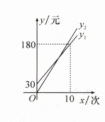设某学生暑期健身次数为$x$(次),按照方案一所需费用为$y_{1}$(元),且$y_{1}=k_{1}x + b$;按照方案二所需费用为$y_{2}$(元),且$y_{2}=k_{2}x$. 其函数图象如图所示.