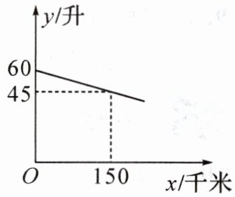 ∴在开往该加油站的途中,当汽车开始提示加油时,离加油站的路程是5千米。