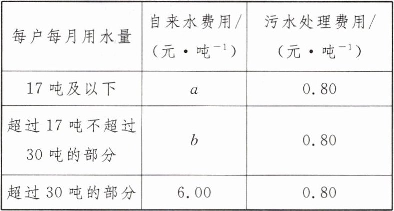 (2)解:30吨的水费为$17×2.2+13×4.2+30×0.8=116(元).\because184>116,\therefore$小王家6月份用水量超过了30吨.设小王家6月份用水$x$吨.根据题意,得$116+6(x-30)+0.8(x-30)=184$,解得$x=40$.