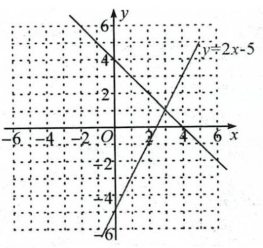 (2)由图象知,直线 $y = -x + 4$ 与直线 $y = 2x - 5$ 的交点坐标为 $(3,1)$,$\therefore$方程组 $\begin{cases}x + y = 4, \\2x - y = 5 \end{cases}$的解为 $\begin{cases}x = 3, \\y = 1 \end{cases}$