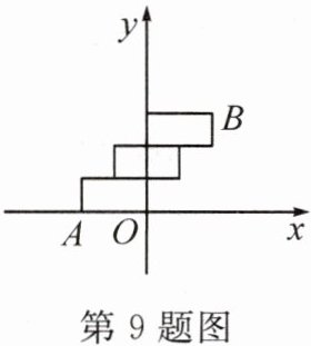 9. 如图,在平面直角坐标系中放置三个长为$2$,宽为$1$的长方形。已知一次函数$y = kx + b$的图象经过点$A$,$B$,则$k =$