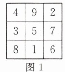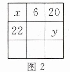 14. 新考向 数学文化 幻方是古老的数学问题,我国古代的《洛书》中记载了最早的幻方——九宫格.将$9$个数填入幻方的空格中,要求每一横行、每一竖列以及两条对角线上的$3$个数之和相等,例如图$1$就是一个幻方.若图$2$是一个未完成的幻方,则其中$x$与$y$的和是(