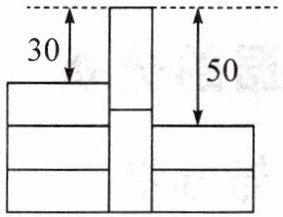 10. 如图,这是由截面为同一种长方形的墙砖粘贴的部分墙面,其中三块横放的墙砖比两块竖放的墙砖低$30\ cm$,两块竖放的墙砖比两块横放的墙砖高$50\ cm$,则每块墙砖的截面面积是
