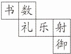 数 96 提示:在正方体展开图中,相对的面不相邻,“礼”与“射”相对,“书”与“乐”相对,“数”与“御”相对,即与“御”相对的是“数”。“正方体的表面积=棱长×棱长×6”,据此代入数据计算即可求出表面积,列式为 4×4×6=96(平方厘米),即这个正方体的表面积是 96 平方厘米。