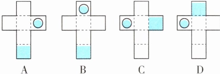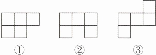 (合理即可)提示:根据正方体展开图,图①②不能折成一个无盖的纸盒,无论在任何位置添上一个同样的正方形,都不属于正方体的展开图。图③比正方体展开图的“1-4-1”型少一个正方形,即少一个面,能折成一个无盖的纸盒。再根据正方体展开图的“1-4-1”型,在中间一行三个正方形的左边或右边添上一个同样的正方形,折成的纸盒就会有盖。(合理即可)答案