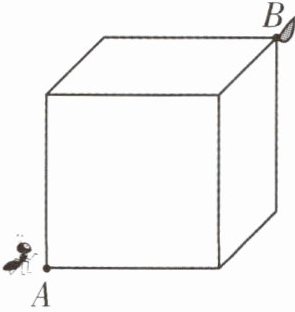 (合理即可)提示:可以先将这个正方体展开,连接A、B两点,相交于某一条棱的中点位置,因为两点之间线段最短,所以这条路线是最短的。路线不唯一,合理即可