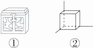 5. 新情境 人文历史 如图①所示,黑漆描金嵌染牙妆奁是个正方体,它的装饰采用了染牙和描金工艺。若将它放置在如图②的位置,露在外面的面积是5292平方厘米,试求它的表面积。