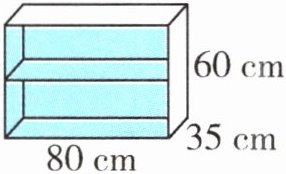 5. 如图所示,这是一个木制的两层置物架(有背板)。它的前面配上了玻璃,那么制作这个置物架至少需要多少平方分米的木板?(厚度不计)