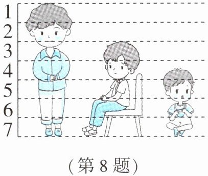 8. 中国传统绘画理论中,对于人体比例的审美标准有“站七、坐五、盘三半”之说(如图),盘高和坐高的最简单的整数比是(