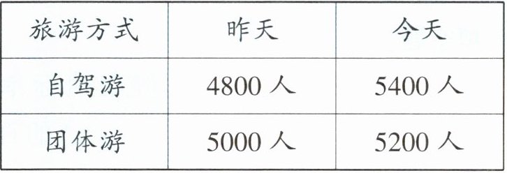 (2)$(5000-4800)÷ 5000=0.04=4\%$ 答:昨天自驾游的人数比团体游的少4%。