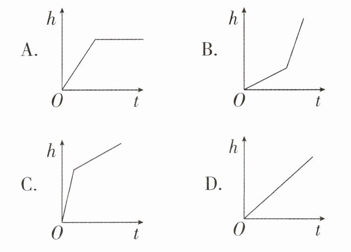 3.(名校期末真题)右图是一个容器的纵截面图,现在向这个空容器内匀速注水,那么下列统计图中能表示注水时间t和水的高度h之间关系的是(