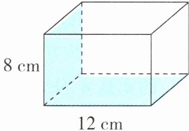 6.如图,一个长方体的长是12厘米,高是8厘米,涂色部分的两个面的面积之和是200平方厘米。这个长方体的体积是多少立方厘米?