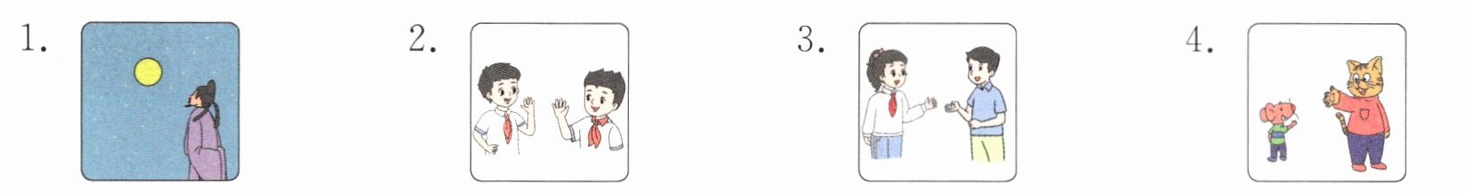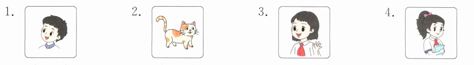 七 阅读对话,判断说话者是谁。请在相应的图片下方括号里标上A、B、C、D。