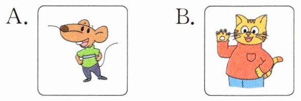 五 认识了这么多新朋友,你是不是迫不及待想和他们打招呼呢?请根据所给句子选择正确的图片。