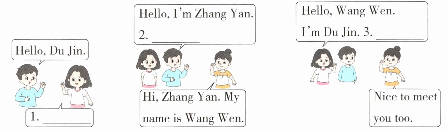 A. Nice to meet you. B. Hello, Zhang Yan. C. What's your name?