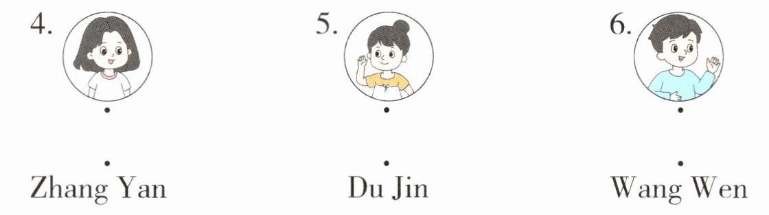 先选择句子补全对话,再根据对话理清人物身份,将人物与姓名连线。