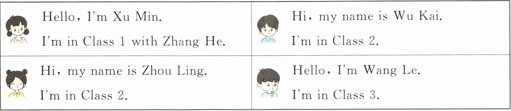 )3. Who's in Class 3?A. Xu Min. B. Zhou Ling. C. Wang Le.