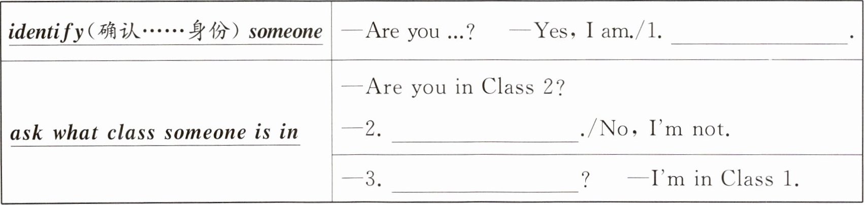 (一)1. A 2. B 3. C (二)1. C 2. A 3. B (三)1. No,I’m not 2. Yes,I am 3. What class are you in