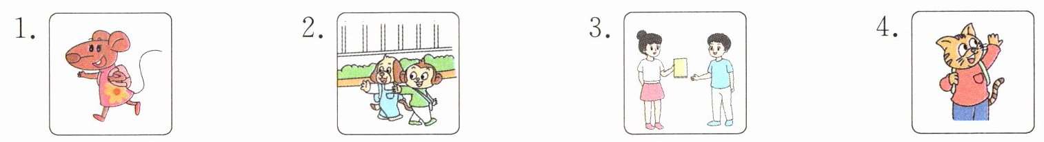 三 根据图片提示并结合所学知识,圈出正确的单词,补全句子或对话。