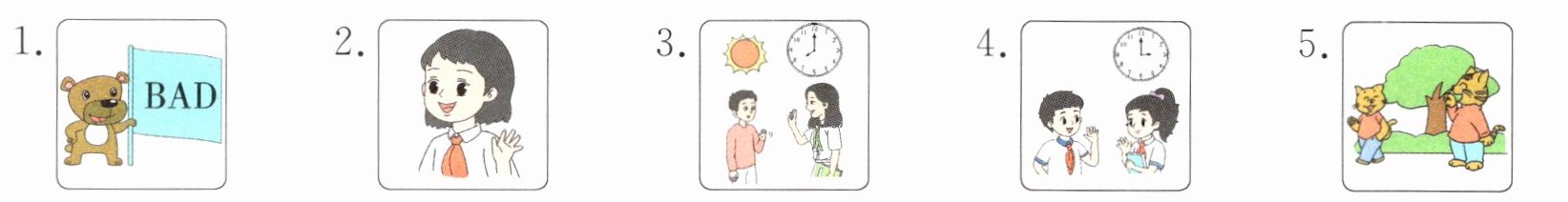 三 根据图片提示,圈出正确的单词,补全句子或对话。