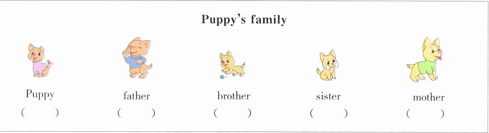 二 听录音,根据所听内容,用阿拉伯数字给 Puppy 和家庭成员排序。(听两遍)