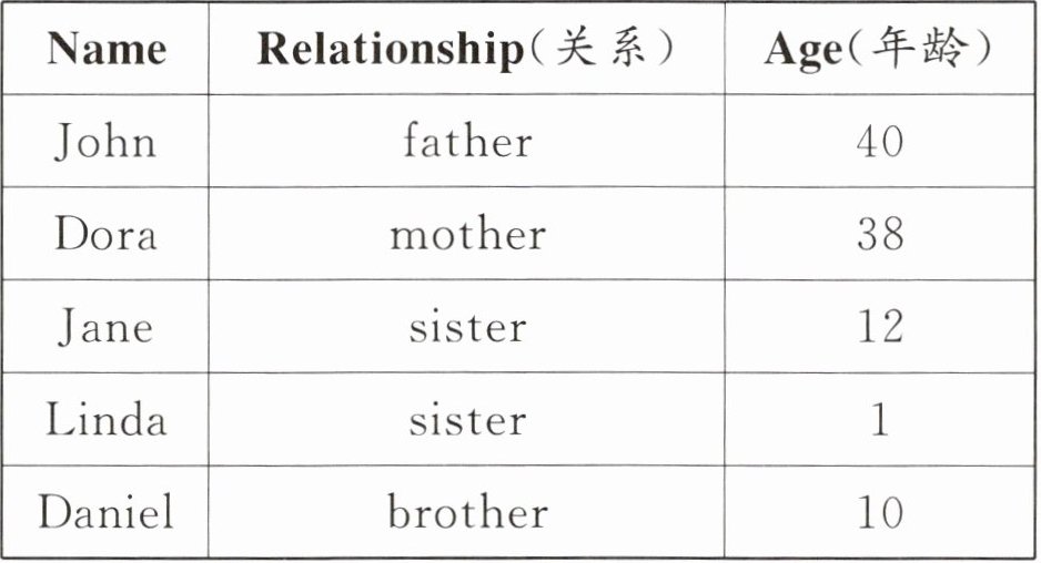 My name is Jim. I'm 10. I want to tell you something about my family. Please look at this table(表格).