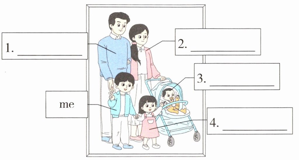 (一)下面是一张家庭合照,Zhu Han 想和英国朋友 Mike 分享,但不知道如何介绍家庭成员。我们来帮他标注一下。