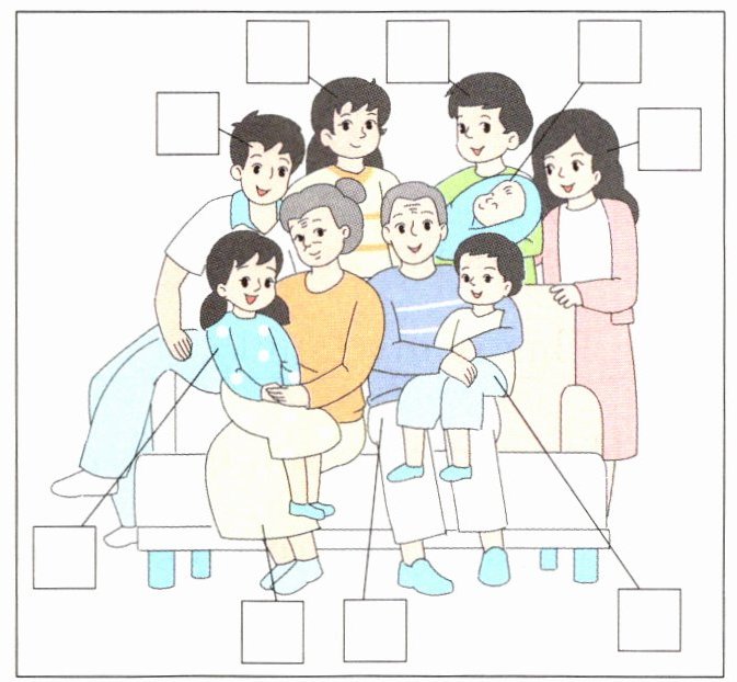 三 根据图片,从方框中选择合适的称呼补全家福。(填序号,有多余选项)