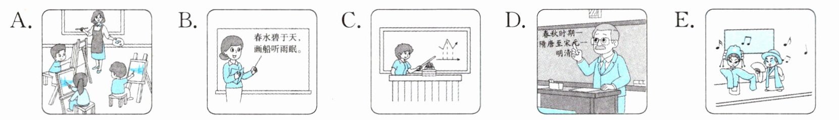 (一)具有江苏特色的课程极具吸引力。请根据句子描述选出代表相应学科的图片。