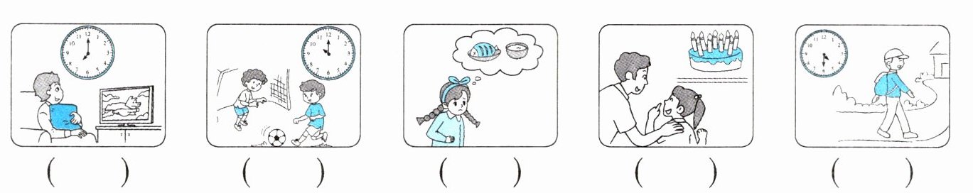 1. gets up 2. dinner; in 3. fun; park 4. time; bed; Good night